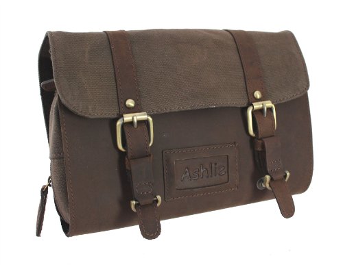 Best Seller! Ashlie Leather Oiled Leather and Fabric Gents Hanging Washbag 7010 Brown Review