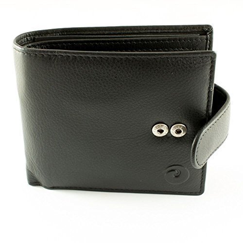 - Wallet is secured with a leather tab with double position press stud fastener