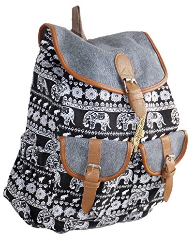 If you want to buy Womens Large Canvas Backpack Ladies Girls Boys School College Student Bag Cabin Travel Rucksack with Gym Sack 2609 (2609 Black elephant) safely and comfortably please click on the button below: